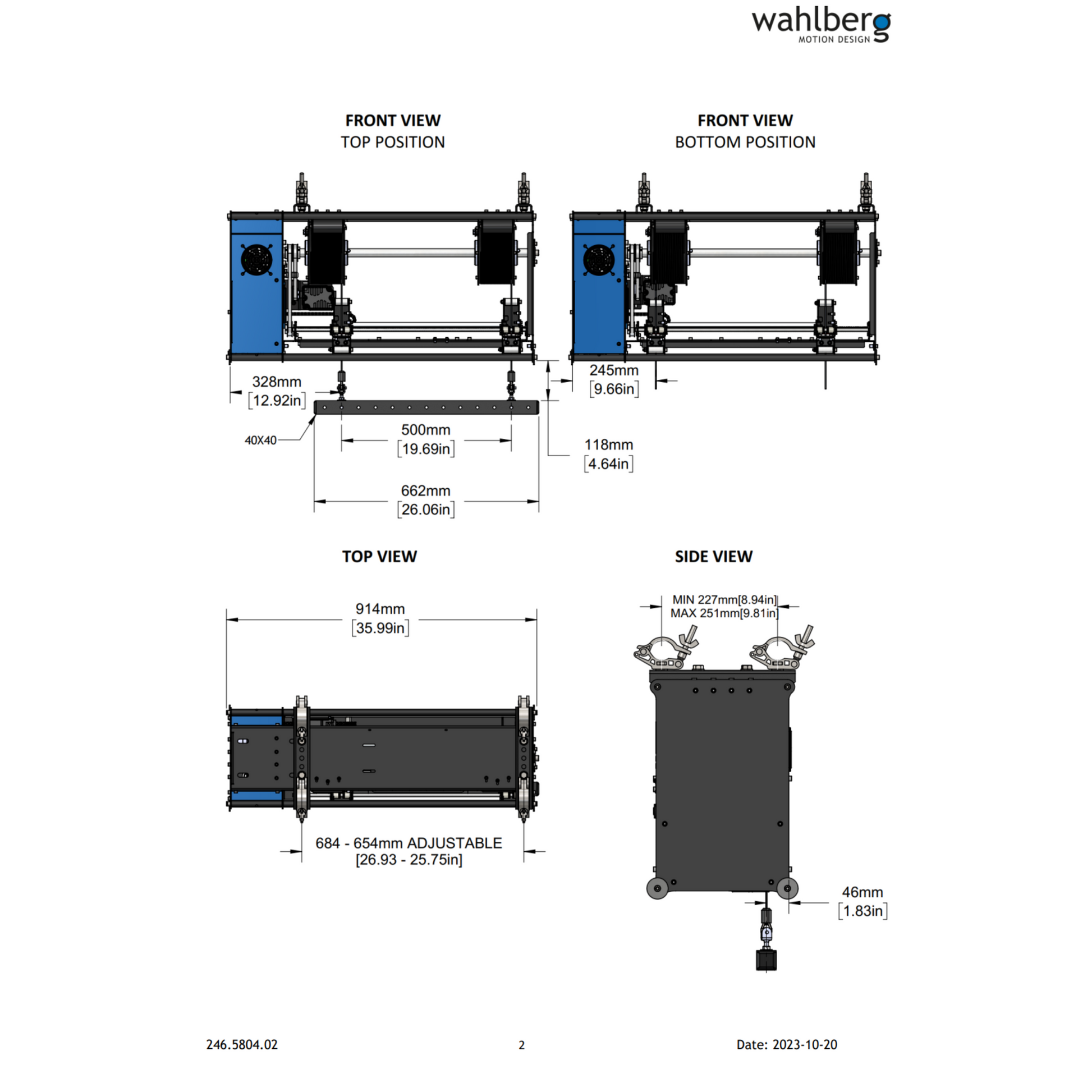 The lifting speed is between 9 cm/s and 45 cm/s depending on the total weight of load mounted to the operating Winch 50 Double.